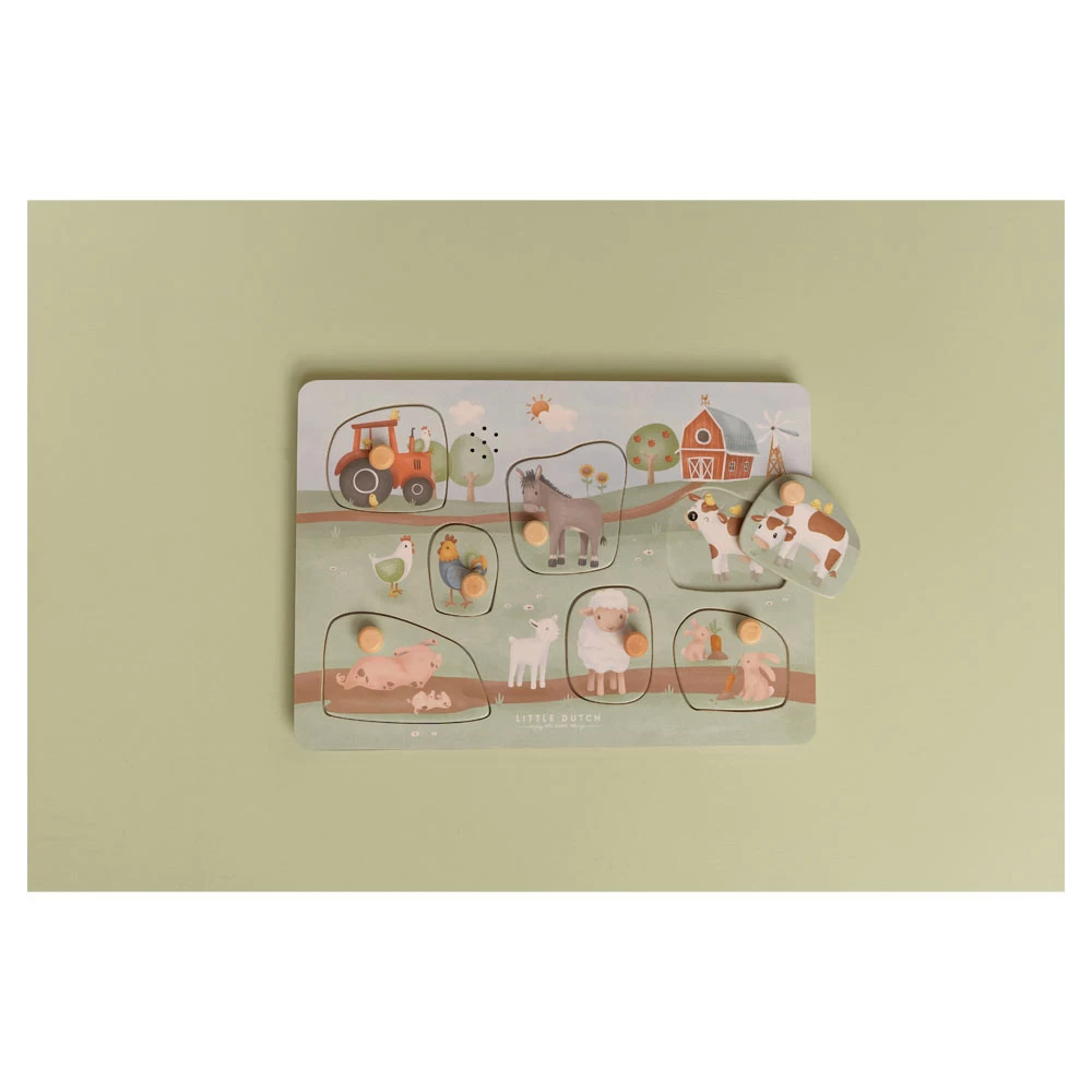 - De Little Dutch Little Farm geluidspuzzel leert kinderen de vormen en geluiden van boerderijdieren te herkennen.
