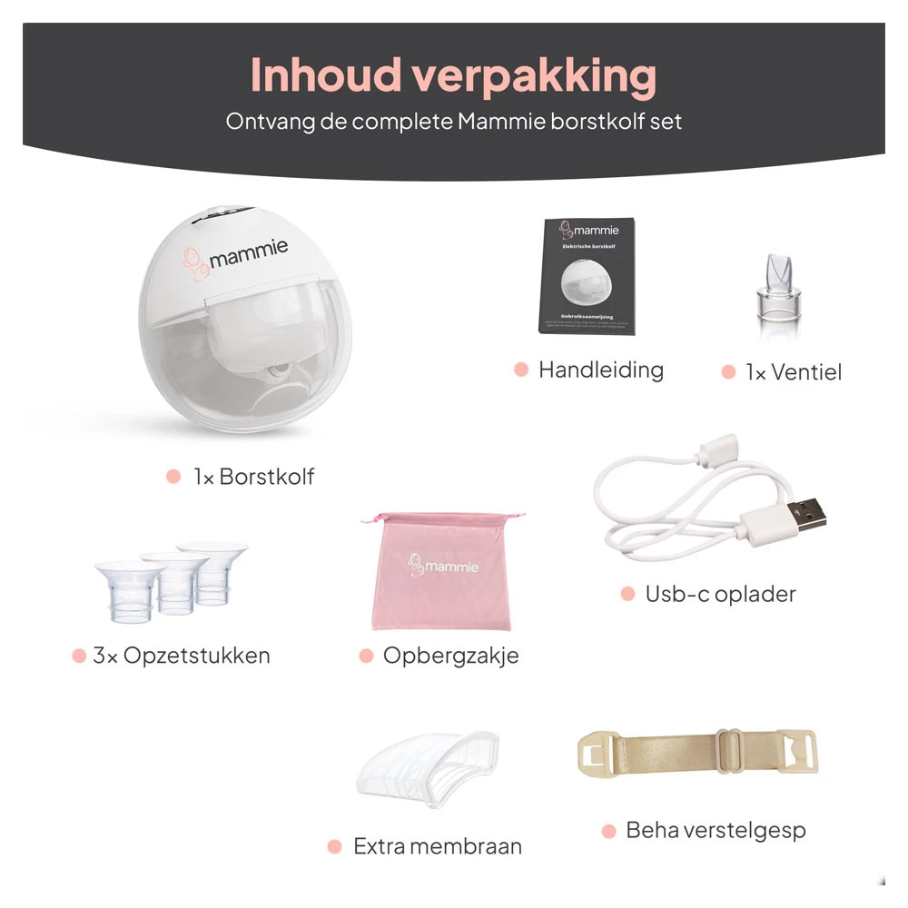 - Handsfree: met de elektrische borstkolf van Mammie heb jij je handen altijd vrij terwijl je kolft.